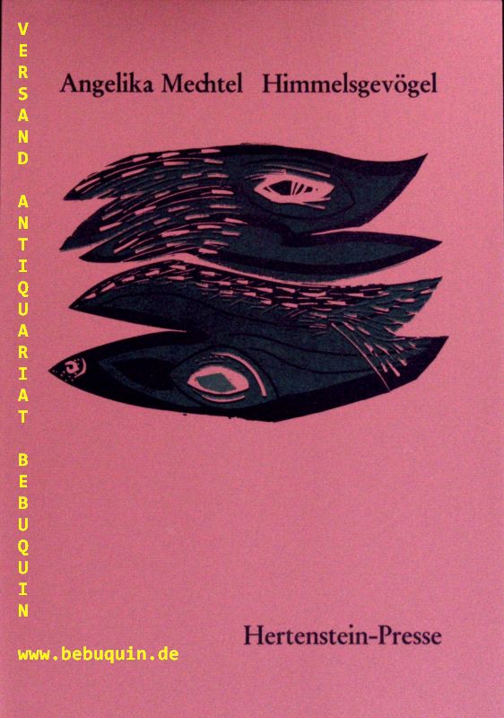 PRESSENDRUCKE.– MECHTEL, Angelika: Himmelsgevögel. Pforzheim (Hertenstein-Presse), 1986. Fol. 8 Bl. mit 4 Linolschnitten von Axel Hertenstein.< ill. OKart. tadellos. Nr. 48 von 250 numerierten und von Autorin und Künstler aignierten Ex.