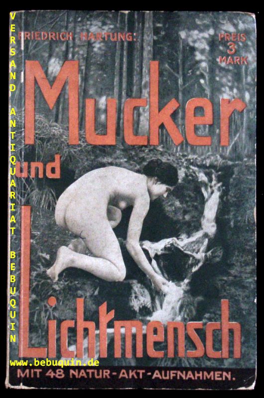 FKK.– HARTUNG, Friedrich: Mucker und Lichtmensch. Leipzig (Parthenon), 1928. Gr. 8. ca 60 S. mit ca 50 Bildtafeln von zumeist unbekleideten Menschen. ill. OKart. gutes Ex. Sehr seltenes Heft mit Fotografien von Lotte Herrlich u.a. Lotte Herrlich (* 11. Dezember 1883 in Chemnitz; † 27. September 1956 in Eutin) war eine deutsche Fotografin, die sich in den 1920er-Jahren vor allem mit Aufnahmen aus der noch jungen Naturistenbewegung einen Namen gemacht hat. (Wikipedia)