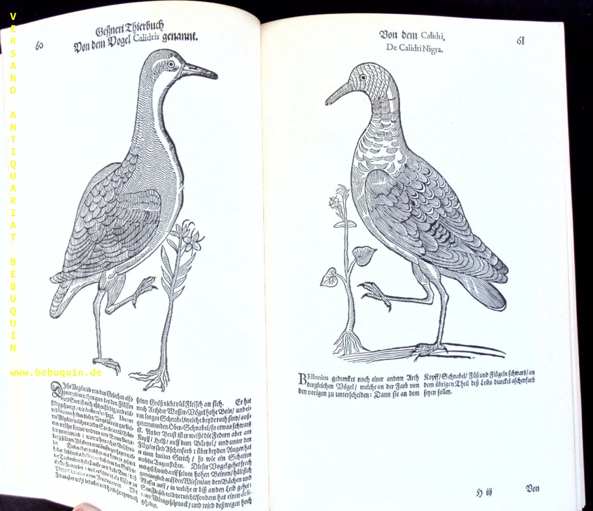 ORNITHOLOGIE.– GESNER, Conrad: Vollkommenes Vogel-Buch. Darstellend eine wahrhafftige und nach dem Leben vorgerissene Abbildung aller sowol in den Lüfften und Klüfften, als in den Wäldern und Feldern und sonsten auff den Wassern und daheim in den Häusern, nicht nur in Europa, sondern auch in Asia, Africa, America, und anderen … 2. Aufl., unveränd. Nachdr. der Ausg. von 1669. Hannover (Schlüter), 1981. Gr. 4°. 380, 212 S. mit zahlr. Abb. ill. OPb. gutes Ex. = ill. OPb.Gesneri redivivi, aucti et emendati … / Conrad Gesner, 2/3.