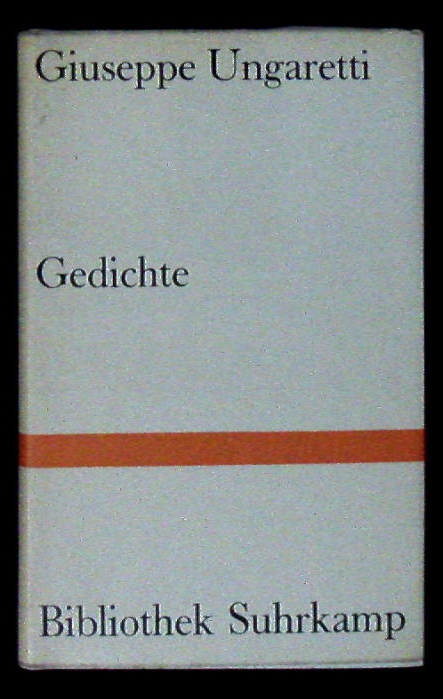 UNGARETTI, Giuseppe: Gedichte. Italienisch und deutsch. 1. – 5. Tsd. Frankfurt (Suhrkamp), 1961. Oktav. 156 S. OPb mit OUmschl. = Bibliothek Suhrkamp, Bd. 70. dt. EA.