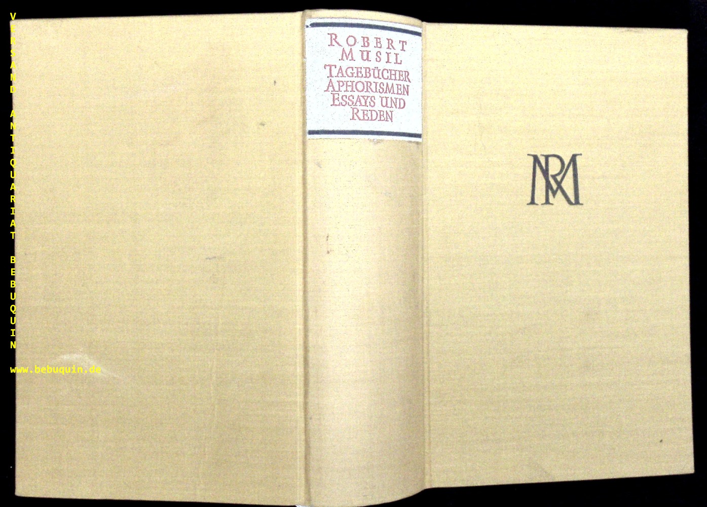 MUSIL, Robert: Tagebücher, Aphorismen, Essays und Reden. Hrsg. von Adolf Frisé. 2. Band von 3. Berlin (Rowohlt), 1955. 12°. 962 S. OLn. Titelei etwas knitterig, insgesamt gut. Gesammelte Werke in Einzelausgaben, Band 2. EA WG² 14.