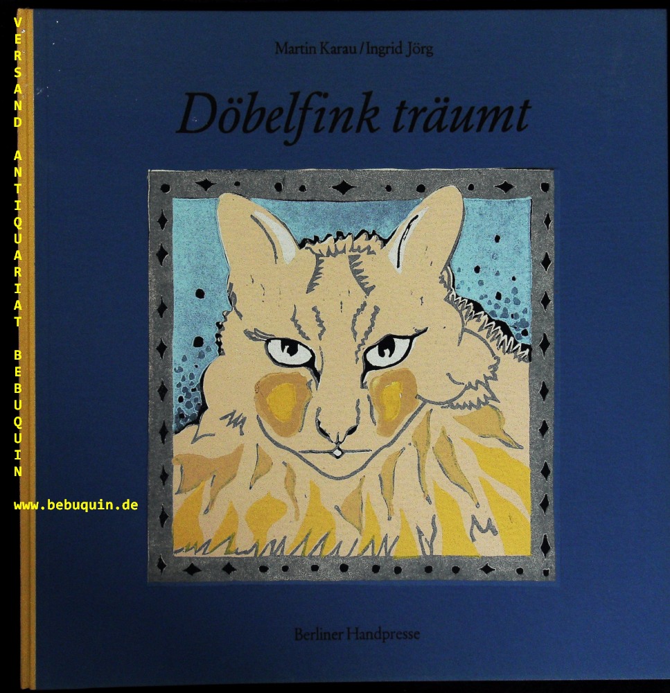JÖRG.– KARAU, Martin Döbelfink träumt. Berlin (Berliner Handpresse), 1991. 34,5 x 33,5 cm. 21 (1) S. mit 10 achtfarbigen Original- Linolschnitten von Ingrid Jörg. farb. ill. OHLn. tadellos. = Berliner Handpresse, 80. Druck. Nr. 45 von 100 nummerierten und von der Künstlerin eigenhändig signierten Ex. dieser Auflage.