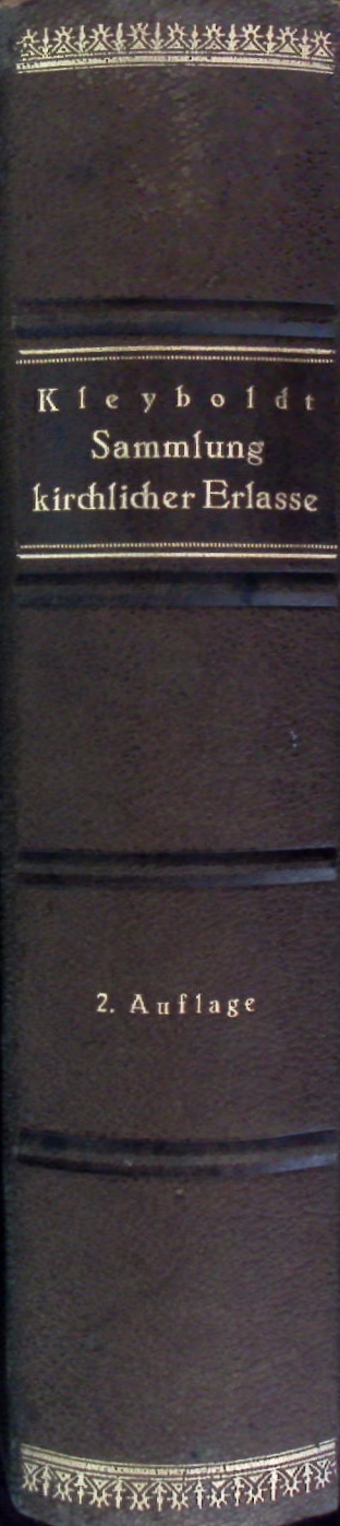 MÜNSTER.– KLEYBOLDT, Christoph: Sammlung kirchlicher Erlasse, Verordnungen und Bekanntmachungen für die Diözese Münster. 2. Aufl. Münster i. Westf (Westf. Vereinsdr.), 1925. Gr. 8°. XX, 890 S. OHLdr auf 5 Bünden mit goldgeprägtem Rücken . Kanten gering berieben.