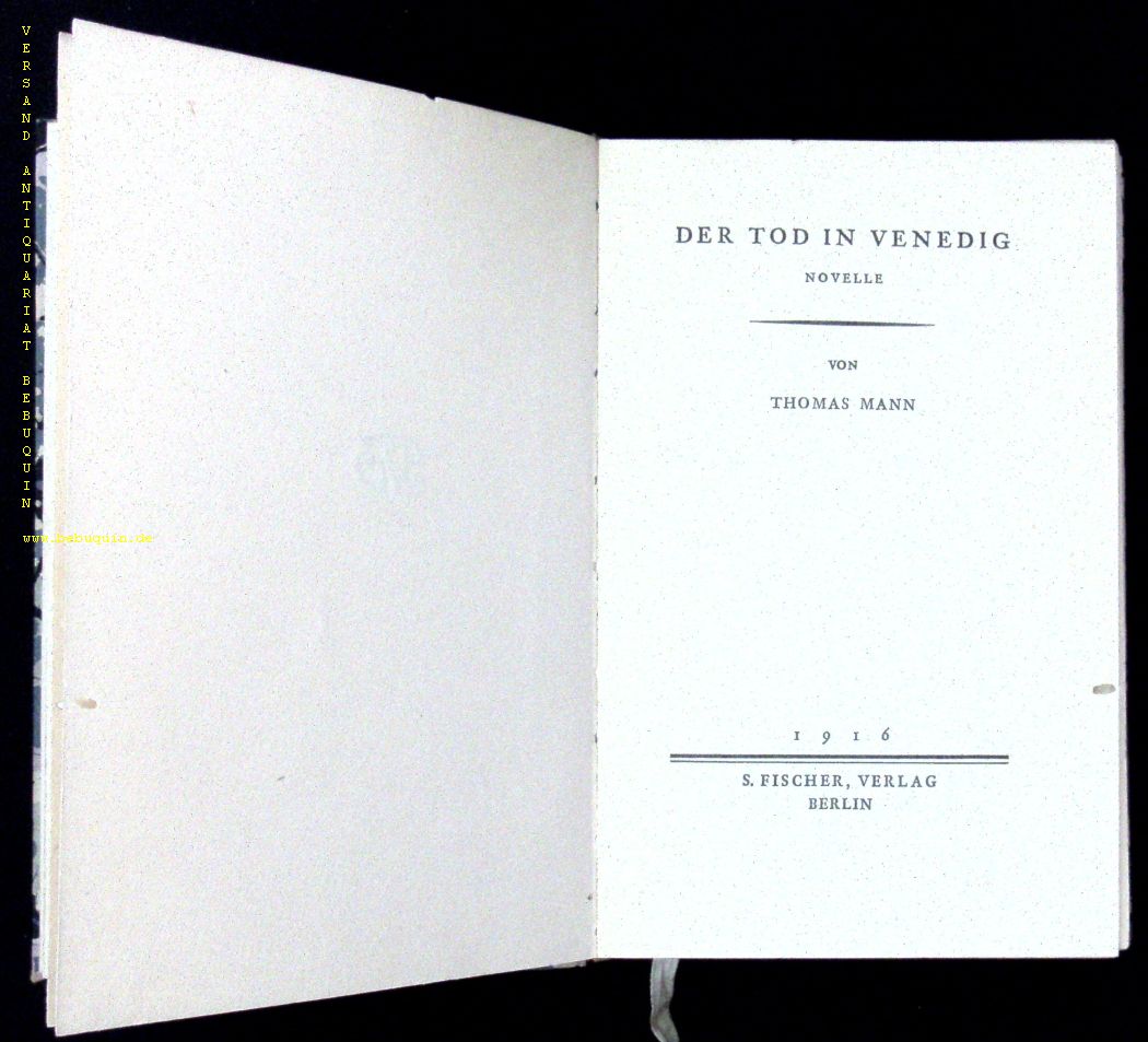 MANN, Thomas: Der Tod in Venedig. 19.– 23. Auflage. Berlin (Fischer), 1916. 145 S. OHPrgt. kleiner Wurmgang, sonst gutes Ex.