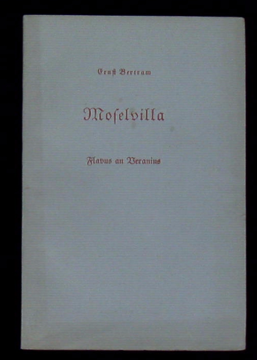 BERTRAM, Ernst: Moselvilla. Flavus an Veranius. Donauwörth (Auer), 1951. 37 S. OKart. 1 von 1000 Ex. der EA WG² 54.