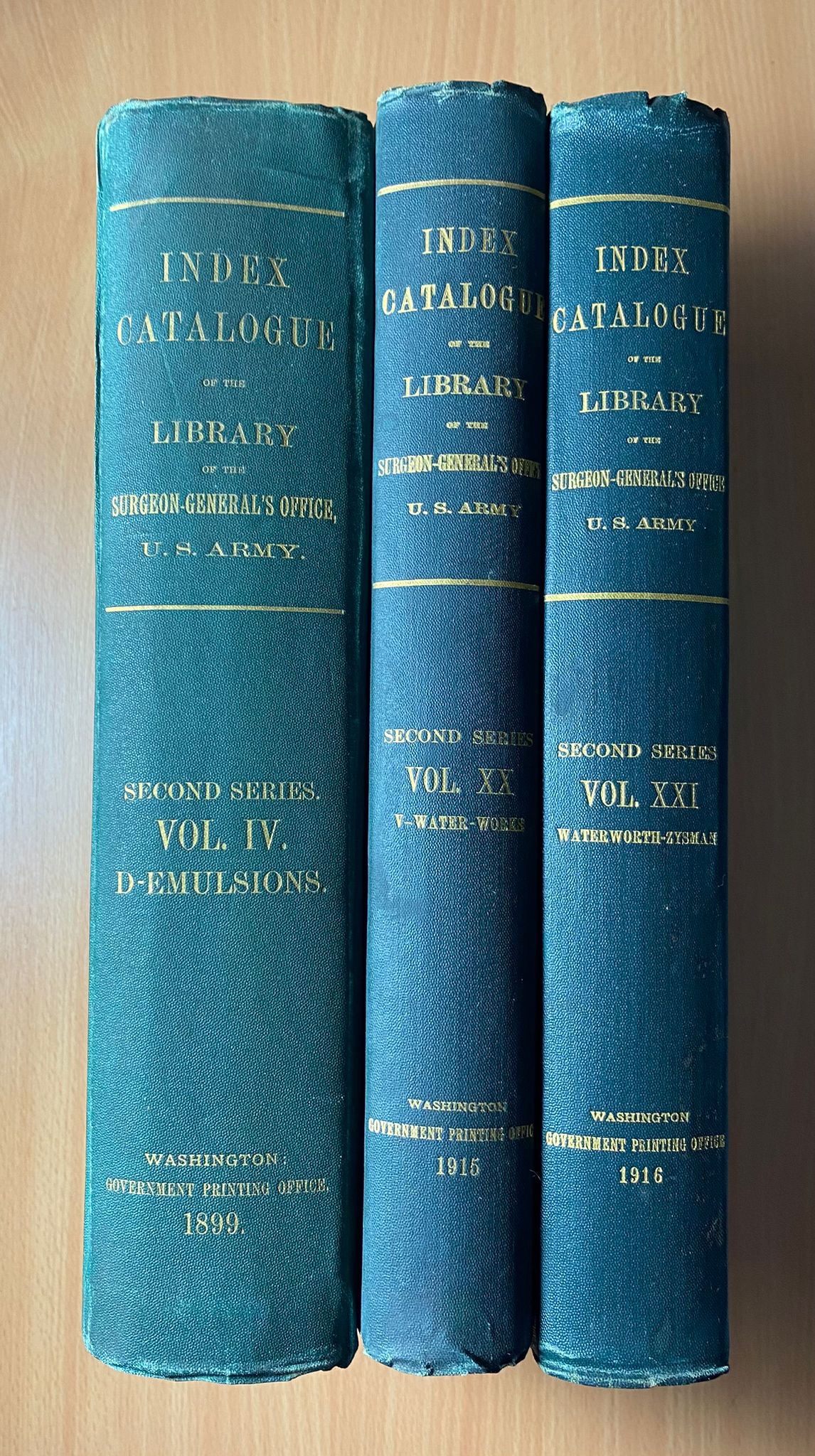 MEDIZIN.– INDEX-CATALOGUE.– of the Library of the Surgeon-general’s Office, united states army. Authors and Subjects 2d Series. Vol. IV, XX + XX!. 3 Bände. Washington (Government Printing Office), 1899, 1915, 1916. 4°. ca 2000 S. OLn. gute Erhaltung.