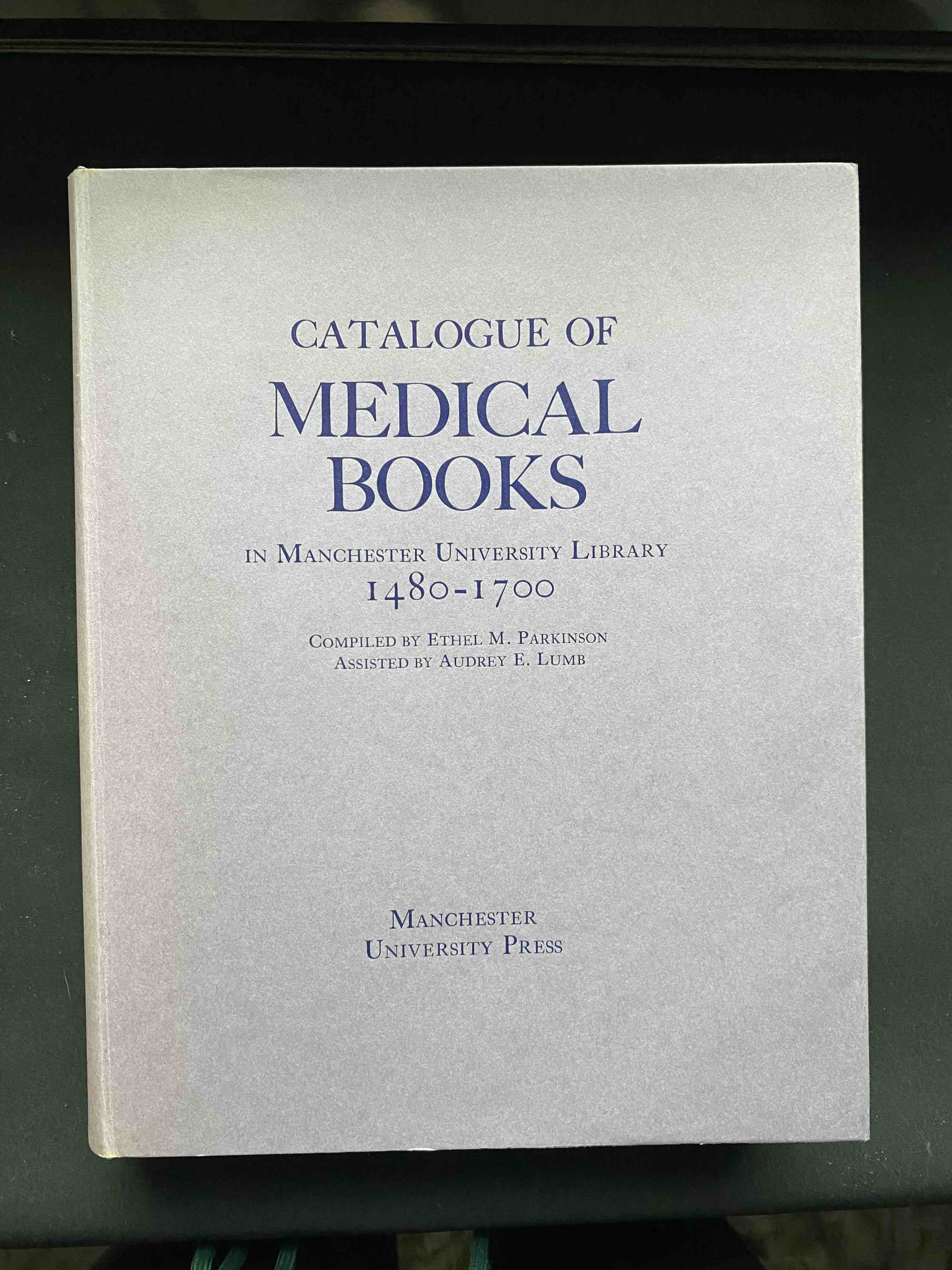 PARKINSON, Catalogue of medical books in Manchester United Library, 1480 – 1700.…
