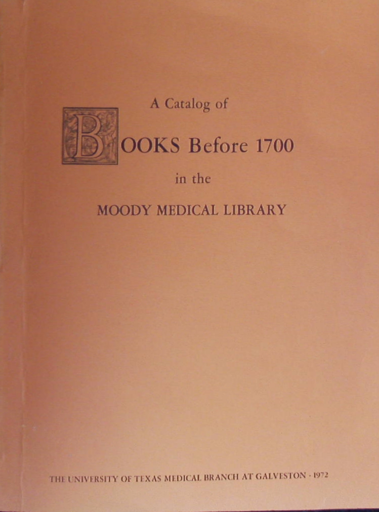 GASKILL, A Catalog of books before 1700 in the Moody Medical Library.