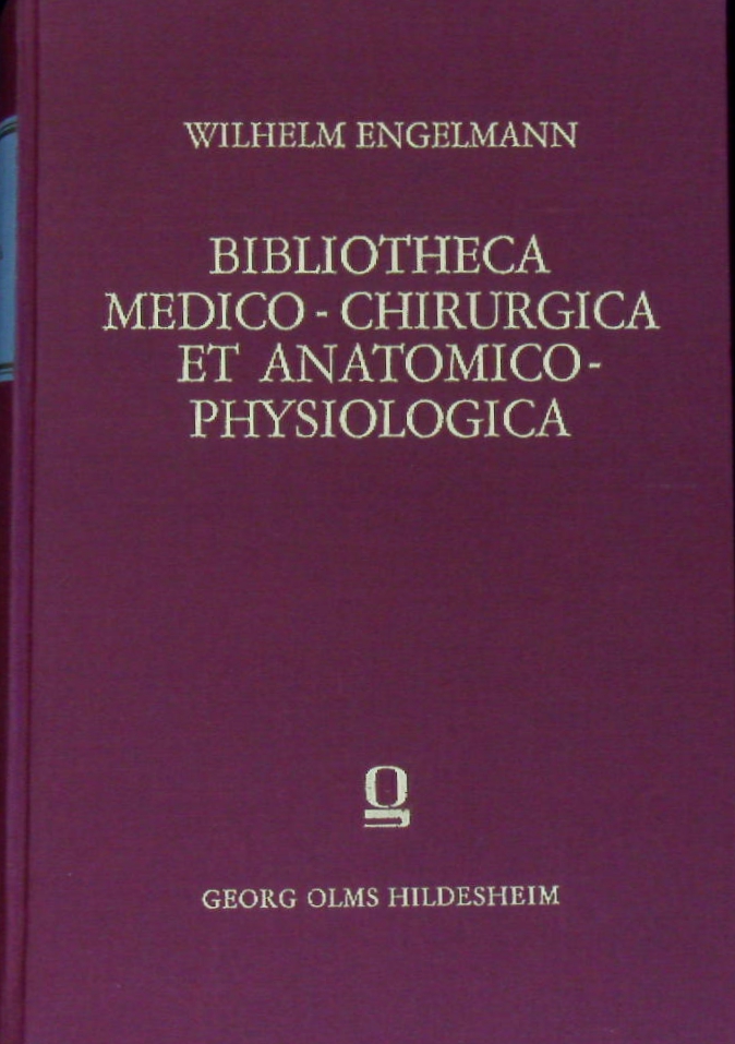 MEDIZIN.– ENGELMANN, Wilhelm: (Hrsg.) Bibliotheca medico-chirurgica et anatomico-physiologica. Alphabetisches Verzeichnis der medizinischen, chirurgischen, geburtshülflichen, anatomischen und physiologischen Bücher, welche vom Jahre 1750 bis zu Ende des Jahres 1847 in Deutschland erschienen sind. Mit einem vollständigen Materien-Register. Nachdr. der 6. gänzlich umgearb. Aufl. der Bibliotheca medico-chirurgica von Enslin; Reprogr. Nachdr. d. Ausg. Leipzig 1848-1867. Hildesheim (Olms), 1965. VIII, 734, 350 S. OLn mit Goldprägung. feines Ex.