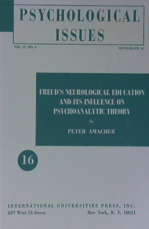 PSYCHOLOGIE.– AMACHER, Peter: Freud’s neurological education and its influence on psychoanalytic theory. New York (Internat. Univ.), 1965. 93 S. OKart. Vorsätze mit Kleberesten. = Psychological issues, Vol. 4, No. 4 = Monograph 16. EA.