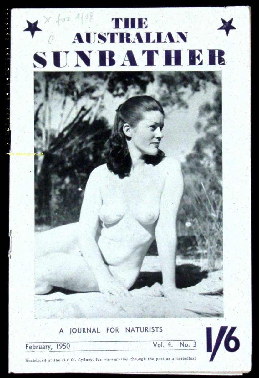 FKK.– AUSTRALIAN SUNBATHER Vol 4. No 3. A Jounal for Naturists. Sydney (P&S), Februarl 1950. 34 S. mit zahlr. fotografischen Bildern mit unbekleideten Menschen. ill. OBr. gutes Ex.