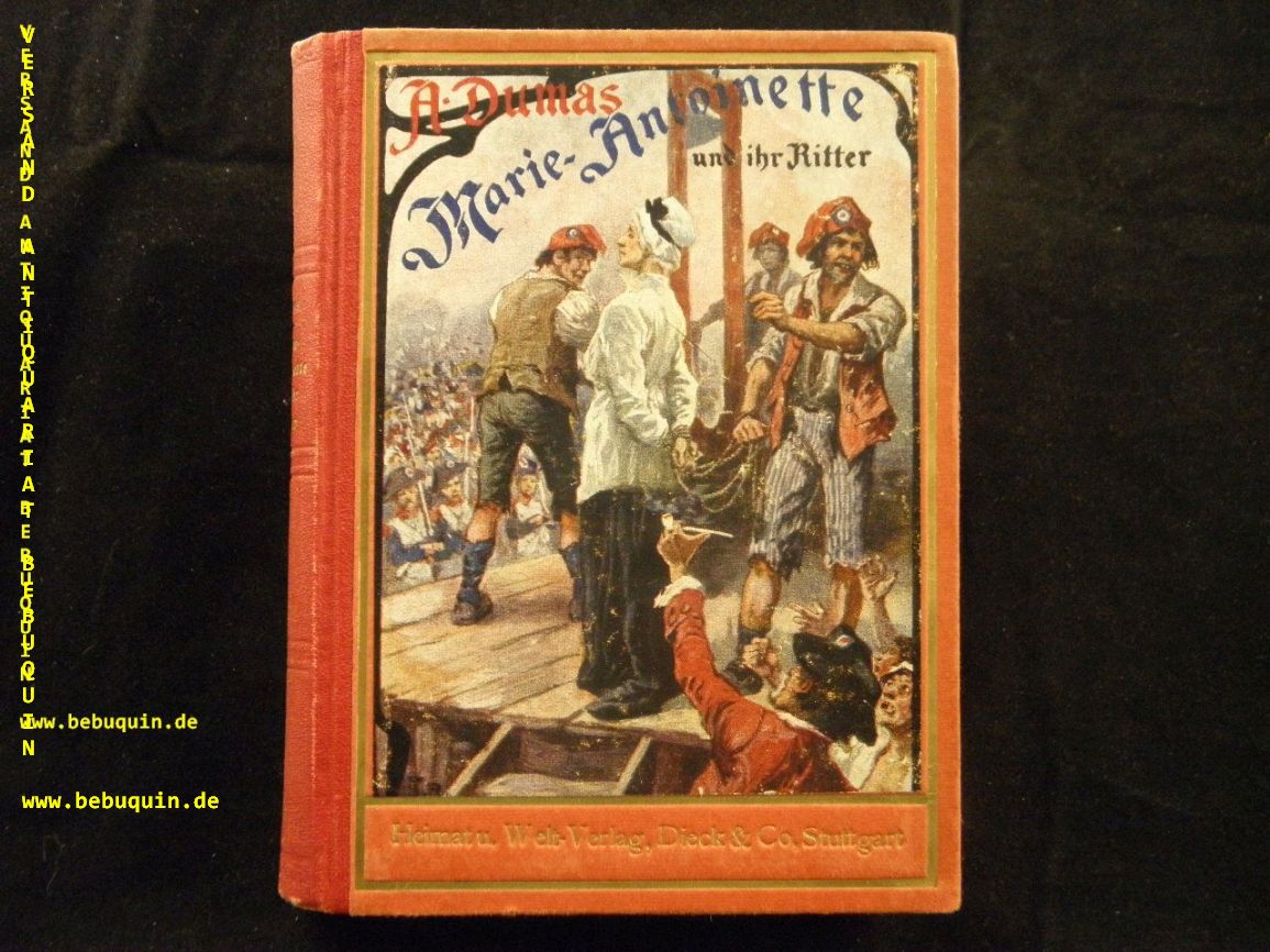 DUMAS, Alexander: Marie Antoinette und ihr Ritter. (Der Chevalier von Maison Rouger). Episode von 1793. D.v. Max Pannwitz. 8. Aufl. 2 Bände in 1 Bd. Stuttgart (Franckh’sche), ca 1910. 176, 148 S. OHLn mit mont. Farbbild. feines Ex.