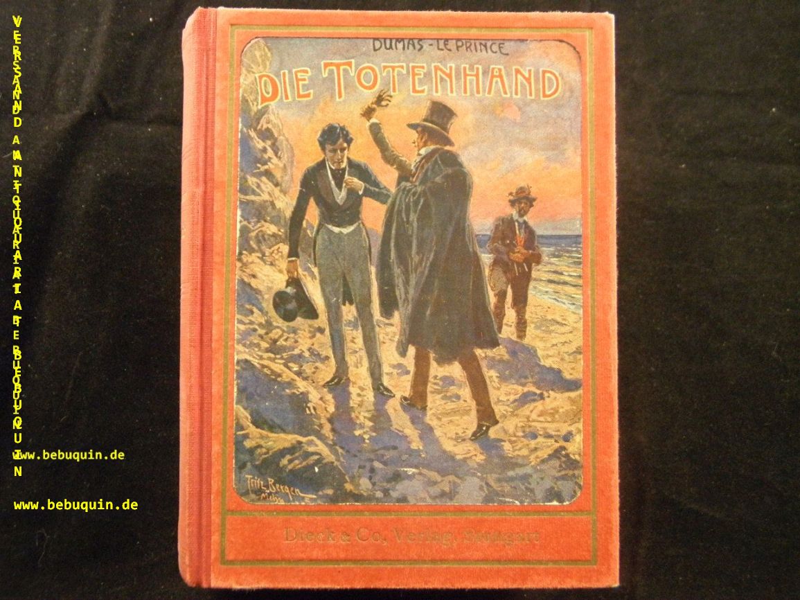 DUMAS, Alexander: Die Totenhand. Fortsetzung von Der Graf von Monte Christo 12. Aufl. 3 Bände in1 Bd. Stuttgart (Dieck), ca 1910. 204, 198, 212 S. farb. ill. OHLn. vorderes Gelenk gelockert.