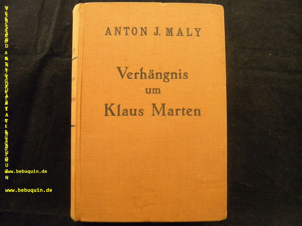 MALY, Anton J.: Verhängnis um Klaus Marten. Abenteuer-Roman. Leipzig (Rekord), ca 1940. 272 S. OLn. feines Ex. seltene EA.