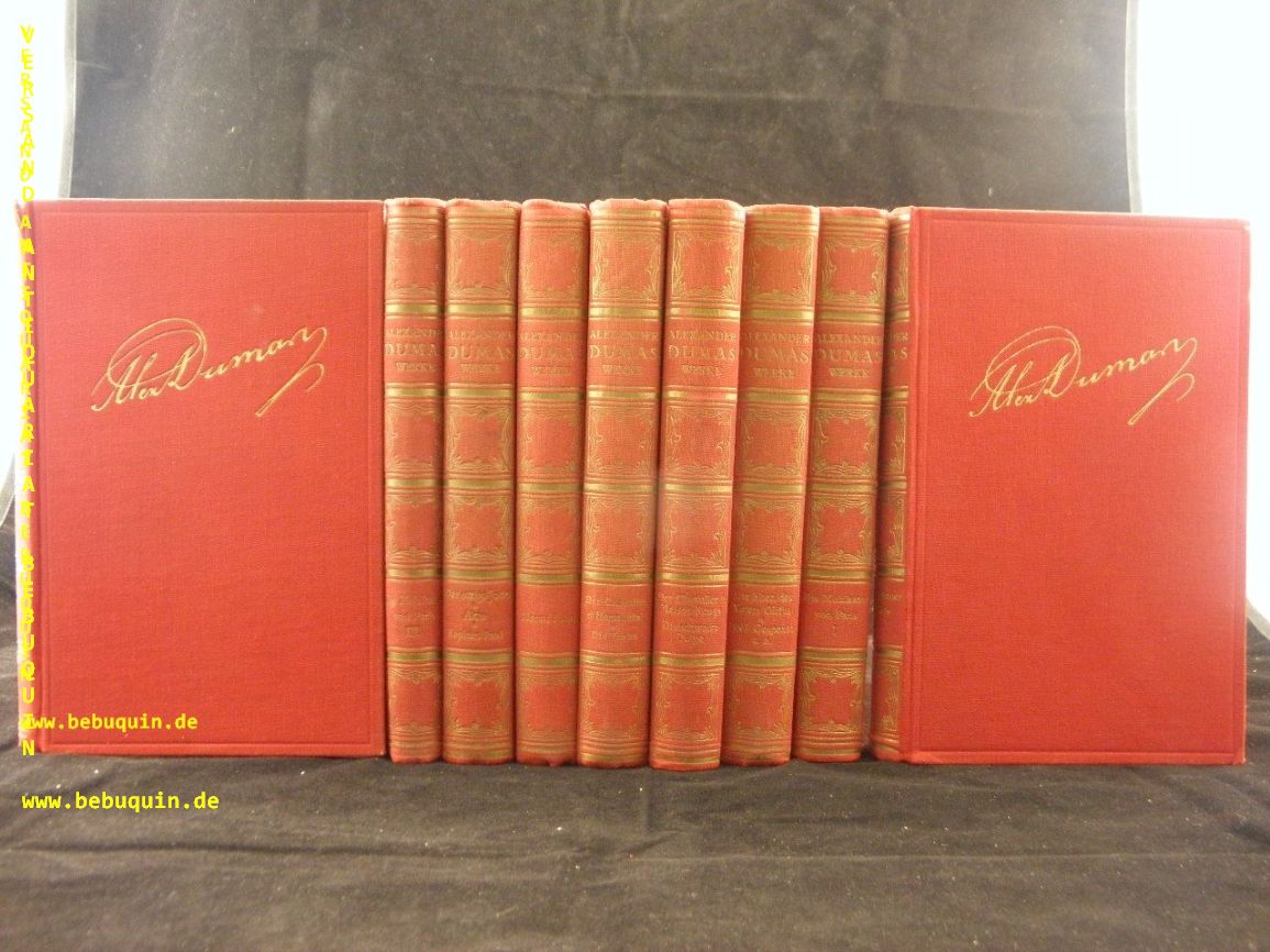 DUMAS, Alexander: Werke. In neuer Übertragung und Bearbeitung von Friedrich Wencker. 9 Bände. Hamburg (Gutenberg), ca 1930. 318, 338, 327, 344, 288, 344, 356, 434, 474 S. OLn. mit goldgeprägter Signatur auf dem Deckel. Kanten nur vereinzelt bestoßen, Rücken einheitlich geblichen, insgesamt gutes Ex.