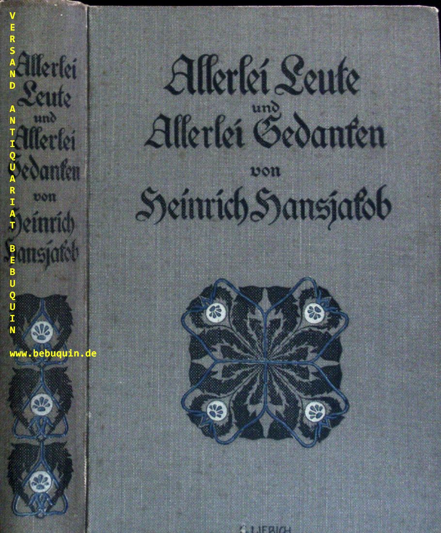 HANSJAKOB, Heinrich: Allerlei Leute und allerlei Gedanken. Tagebuchblätter. Stuttgart (Bonz), 1913. kl. 8°. 406 (3) S. ill. OLn. vereinzelte Marginalien. EA. WG² 76.