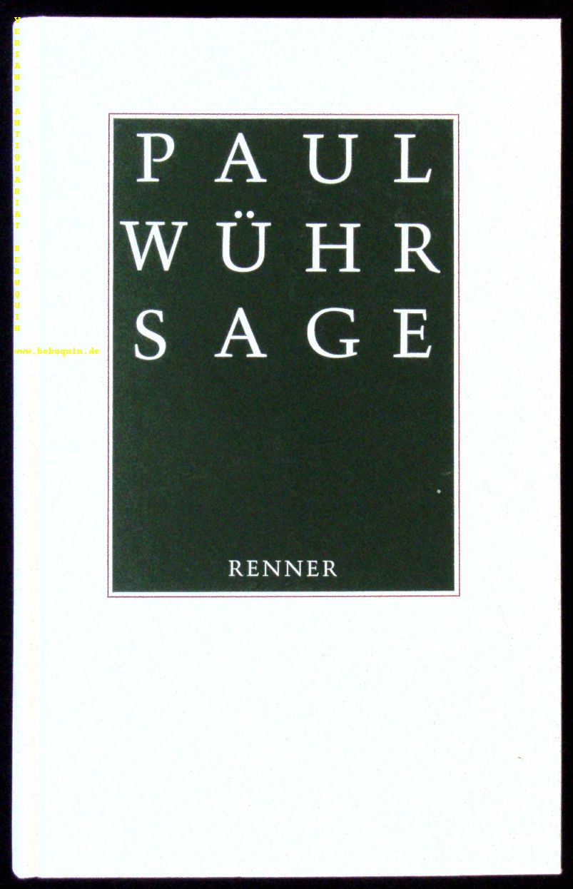 WÜHR, Paul: Sage. Ein Gedicht. München, Renner, 1988. 217 S. OPb. EA.