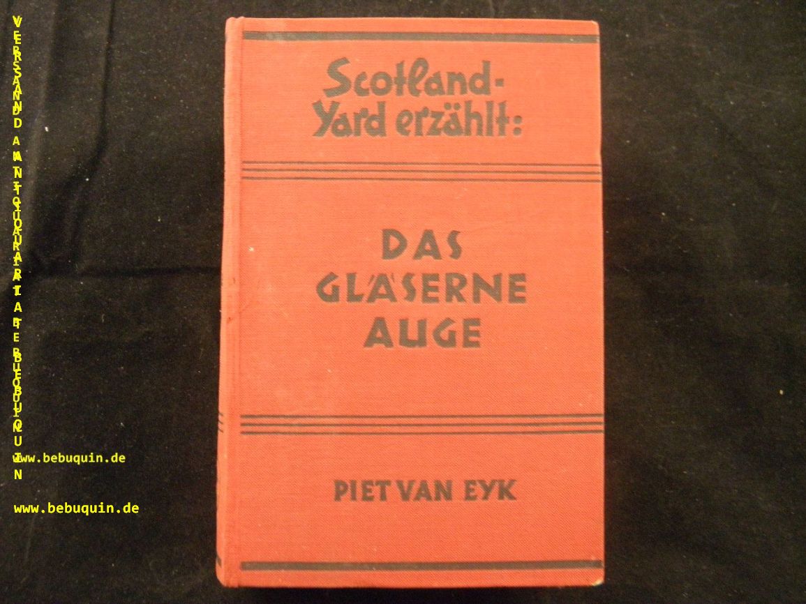 EYK, Piet van: Das gläserne Auge. Scotland Yard erzählt. Berlin (Otto Uhlmann), ca 1938. 252 (3) S. OLn . feines Ex. = Scotland Yard erzählt, Bd. 6. EA. Schädel 2119.