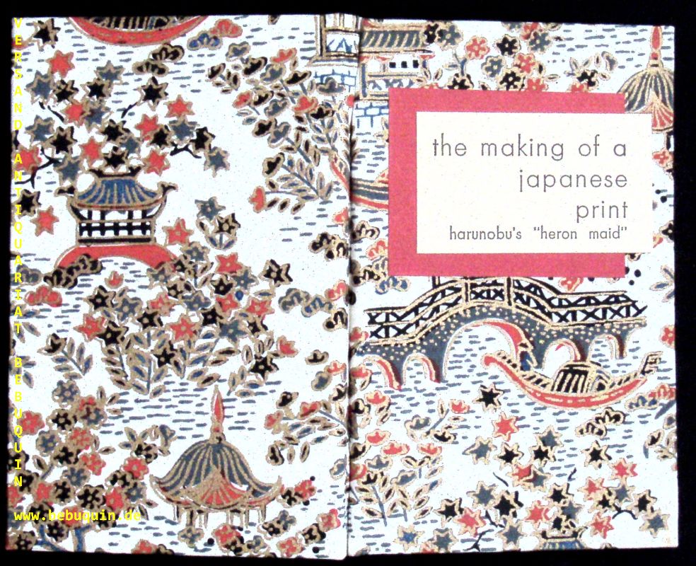 CHIBA, Reiko: The making of a Japanese print. Harunobu’s „Heron maid.“ With an introd. by Reiko Chiba. 6. print. Rutland (Tuttle), 1972. 12°. 13 Bl. mit farb. Bildtafeln. farb. ill. OSeide. feines Ex. schönes Blockbuch mit zunehmer Kolorierung.