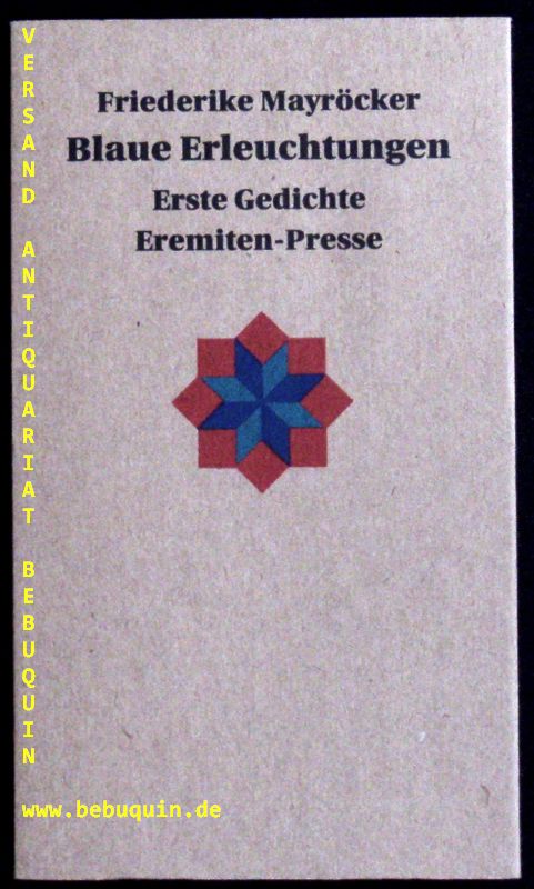 EREMITEN-PRESSE.– MAYRÖCKER, Friederike: Blaue Erleuchtungen. Erste Gedichte. Düsseldorf (Eremiten), 1995. 45 S. OKart. = Eremiten-Lese, No. 3. 1. Aufl. dieser Ausgabe.