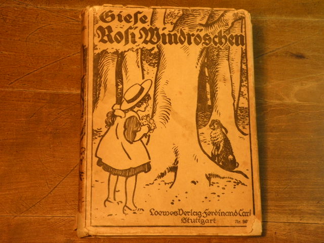 GIESE, Martha: Rosi Windröschen. Eine Geschichte von kleinen und großen Waldkindern. Stuttgart (Loewes), o.J. 160 S. mit 4 zweifarb. Bildern von W. Planck. OPb. mit OUmschl. Ecken + Kanten des Buchrücken bestoßen, Umschl. beschädigt, letzte Seite oben etwas locker.