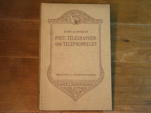FUNK.– EGER, Georg + GORDAN, Kurt: Post-, Telegraphen- und Telephonrecht. Leipzig (Gloeckner), 1909. 246 S. ill. OLn. StaT. seltene EA.
