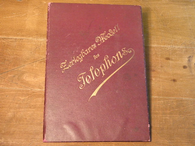 FUNK.– ZERLEGBARES MODELL DES TELEPHONS.– o.O. (o.Vlg.), ca 1900. Gr. 8°. Modelband mit 1 ausklappbaren Modell,unterteilt in 8 Tafeln , ein Teil davon wiederum mit aufklappbaren Teilen + 6 S. OLdr mit goldgeprägtem Deckel. gutes Ex. EA.