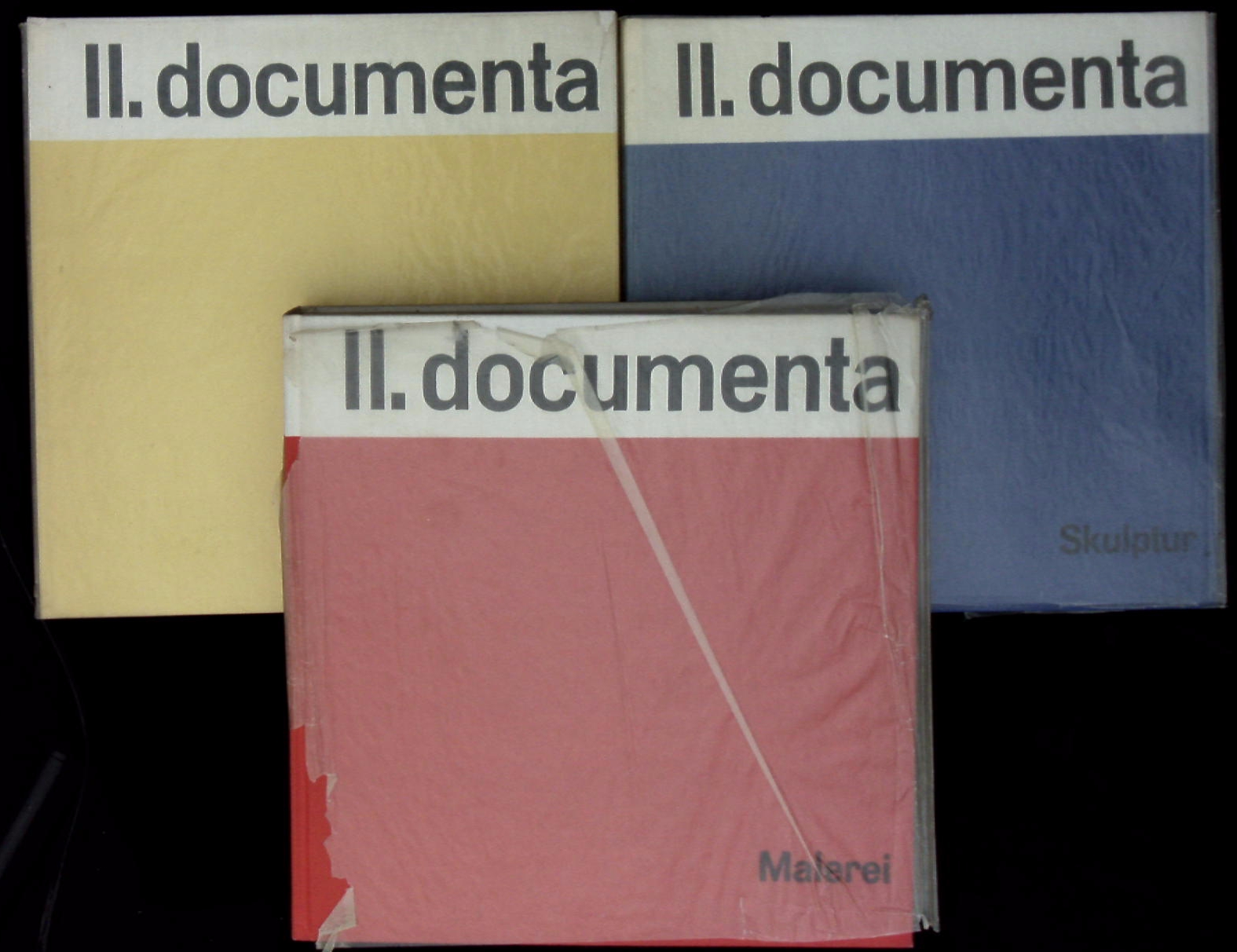 DOCUMENTA II. Malerei. Skulptur. Druckgrafik. Internationale Ausstellung, 11. Juli – 11. Oktober 1959 in Kasselö. 3 Bände. Köln (DuMont Schauberg), 1959. Gr. 8°. 99, 470, 191 S. mit zahlr. Bildern. ill. OPb. feines Ex. EA.