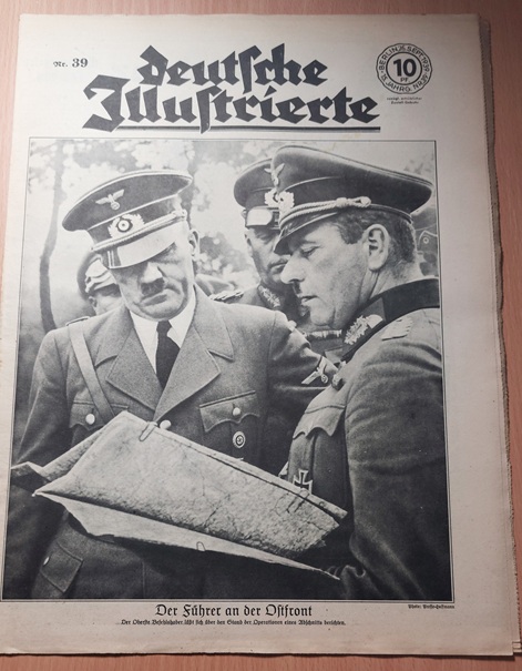 2. WELTKRIEG.– ZIMMERMANN, Richard: (Redaktion) Deutsche Illustrierte. 15. Jahrgang. Heft 1 – 52 in 52 Heften ( so komplett). Berlin (Erich Zander), 1939. 37 x 28 cm. über 1000 S. mit zahlr. zumeist fotografischen Bildern. ill. OBr. Kanten teils bestoßen und gebräunt, vereinzelte Einrisse, das Heft 52 mit loser Titelseite und etwas stärker lädiert. Eindrucksvolles Dokument für Nationalsozialismus und den Beginn des 2. Weltkriegs. „Deutsche Illustrierte“ ist der Name einer Zeitschrift, die von 1928 bis 1944 in Deutschland erschienen ist. Es handelte sich um ein Magazin mit einem breiten Themenspektrum, das sowohl aktuelle politische und gesellschaftliche Ereignisse als auch kulturelle Inhalte und Unterhaltung umfasste. Die Zeitschrift war bekannt für ihre hochwertigen Illustrationen und Fotografien. (Wikipedia)