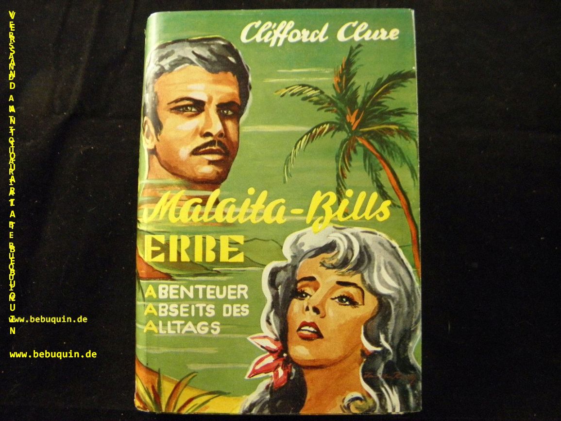 CLURE, Clifford: Malaita-Bills Erbe. Abenteuer-Roman. Kaiserslautern (Skorpion), 1957. 254 S. farb. ill. OSupronyl. mit OUmschl. gestempeltes Leihbuch 1. Aufl. dieser Ausgabe.