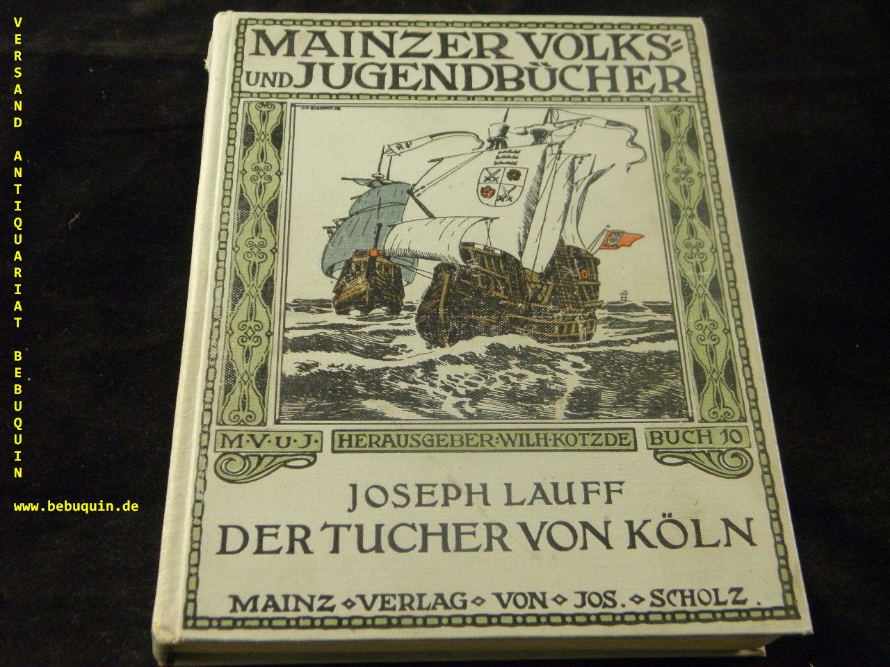 LAUFF, Joseph: Der Tucher von Köln. Eine alte Stadtgeschichte. 9.– 11. Tsd. Mainz (Jos. Scholz), 1909. 208 (4) S. mit Bildern von O. Richard Bossert und Buchschmck von J.V. Cissarz. farb. ill. OLn. sehr feines Ex.