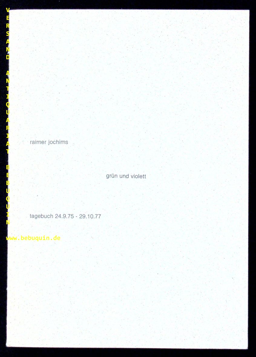 PRESSENDRUCKE.– JOCHIMS, Raimer: Grün und violett. Tagebuch 24.9.75 – 29.10.77. Innsbruck (Allerheiligenpresse), 1981. 84 Bl. OKart. tadellos.