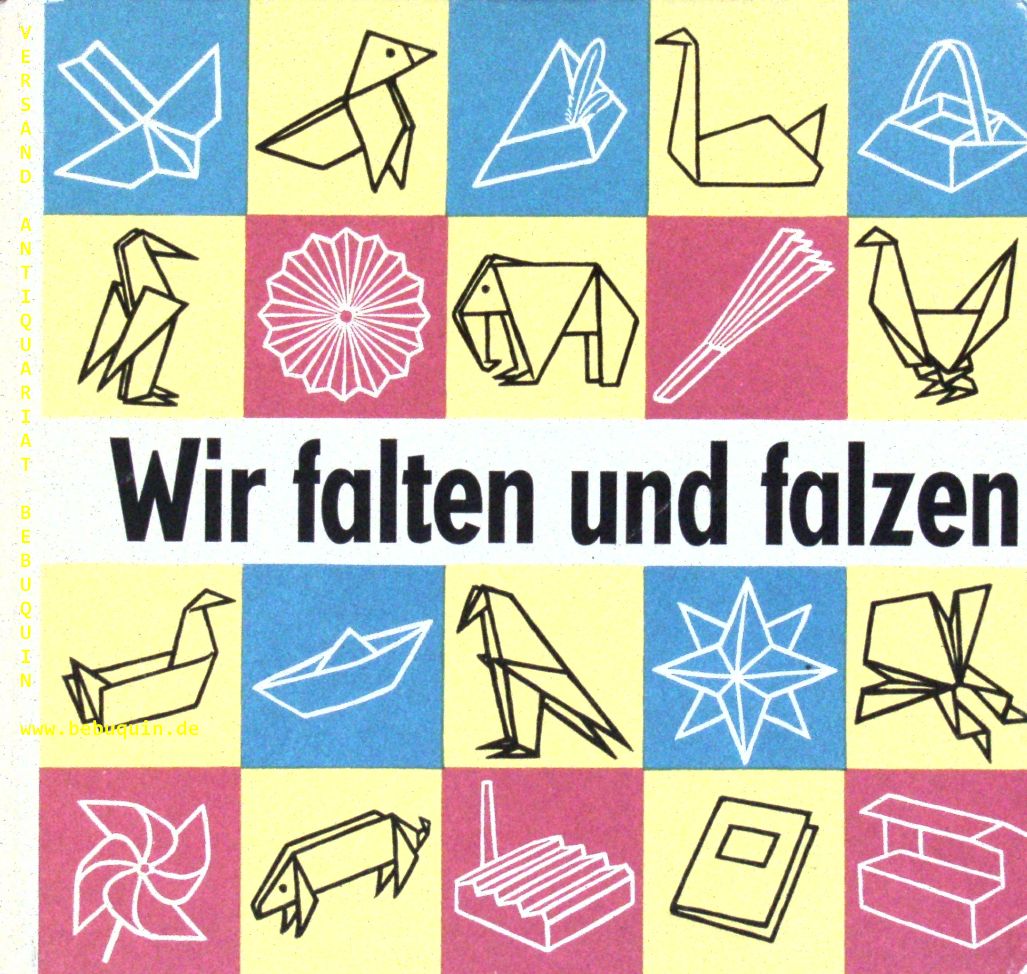 BASTELN.– SCHÖNHERR, Joachim: Wir falten und falzen. Eine Zusammenstellung gefalteter u. gefalzter Papierarbeiten. 2. Aufl. Leipzig (Arnold), 1974. Quer Gr. 8°. 32 S. mit zahlr. farb. Abb. farb. ill. OPb.