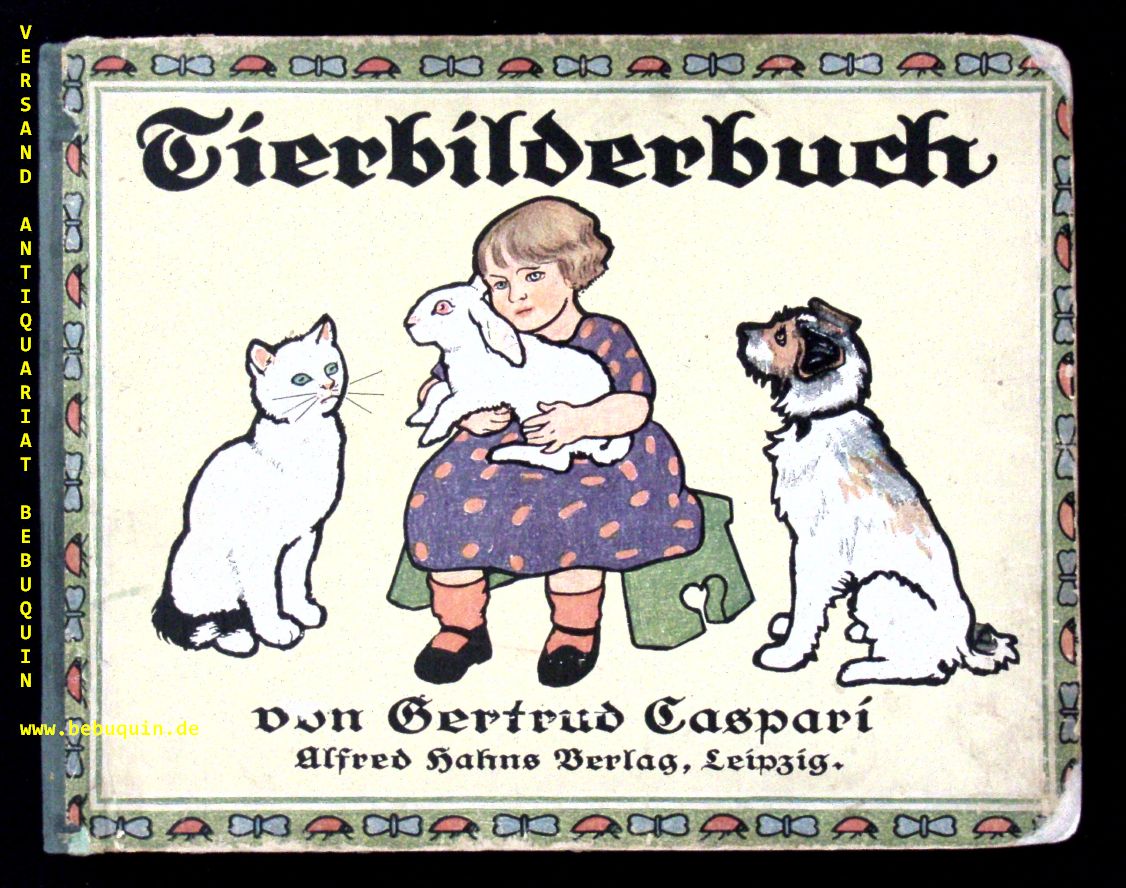 CASPARI, Gertrud: Tierbilderbuch. 11./12. Auflage. Leipzig (Hahn), 1944. Quer 4°. 6 unpag. Pappbl. mit farb. Bildern von Gertrud Caspari. farb. ill. OHLn. Kanten etwas berieben, leicht bespielt. letzte Auflage des oft nicht nachweisbaren Titels mit den eidrucksvolen Motiven. Neubert