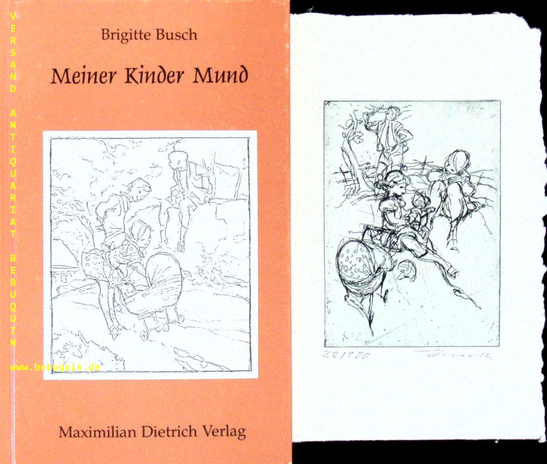 BUSCH, Brigitte: Meiner Kinder Mund. Memmingen (Dietrich), 1985. 66 S. mit 21 Zeichnungen von Wilhelm M. Busch. ill. OPb. tadellos. Nr. 22 von 100 Ex. der Vorzugsausgabe mit einer eigenhändig numerierten und signierten Original Radierung von Wilhelm M. Busch.