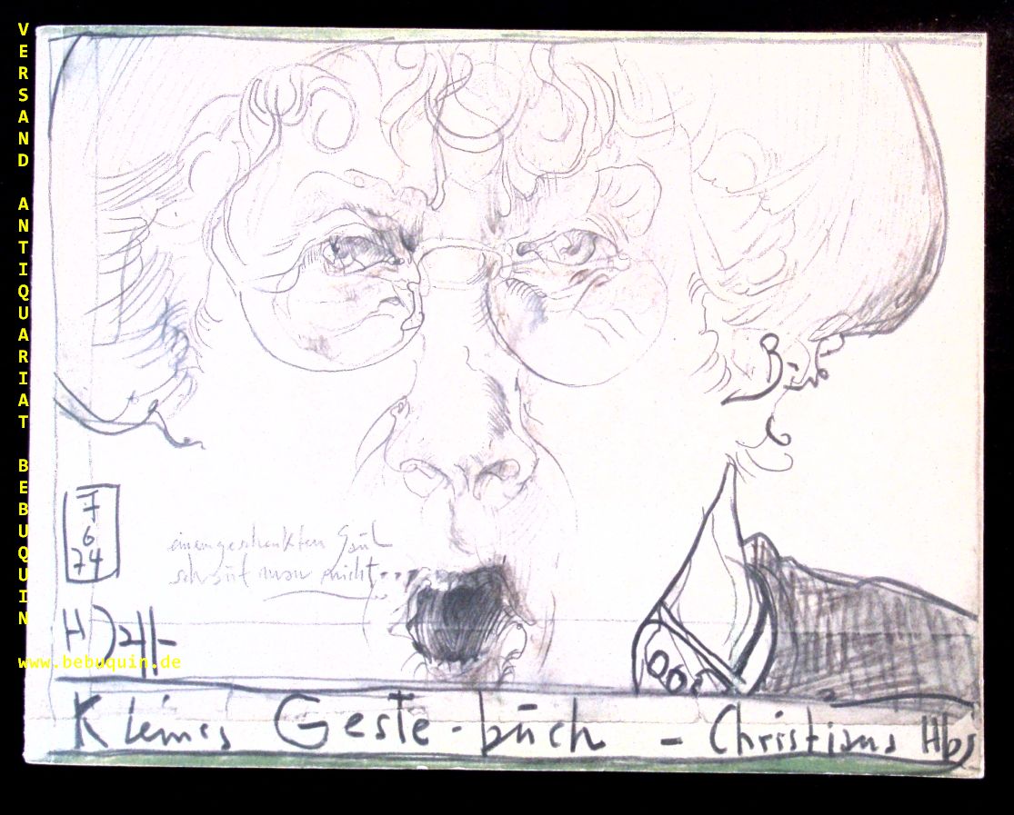 JANSSEN, Horst: Kleines Geste-Buch. Hrsg. von Gerhard Schack. Hamburg (Christians), 1974. Quer 4°. 64 Bl. mit zahlr. Bildtafeln. ill. OKart. tadellos. EA Rüden A.39.