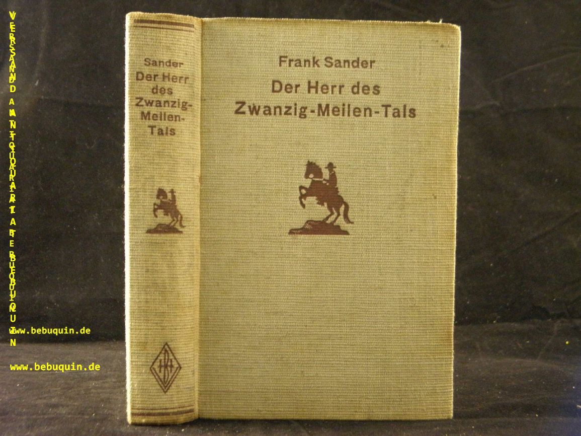 SANDER, Frank: Der Herr des Zwanzig-Meilen-Tales. Bremen (Henry Burmester), 1935. 256 S. ill. OLn. Vorsätze mit Kleberesten, NaT. = Burmester’s Abenteuer – Serie.